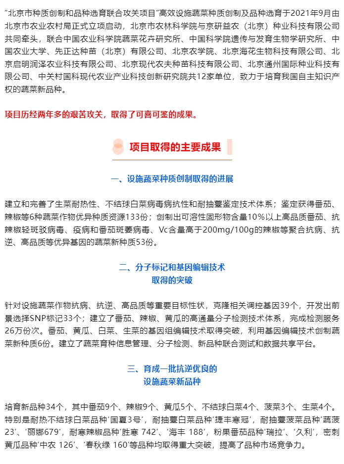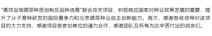 北京市農(nóng)林科學(xué)院與京研種業(yè),將再接再厲以創(chuàng)制和培育更多優(yōu)質(zhì)、多抗、豐產(chǎn)的蔬菜品種