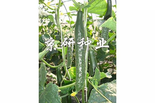 適宜春、夏、秋露地種植,兼做春秋大棚種植。早熟,生長勢較強,不易早衰,耐熱性強。主蔓結瓜型,瓜條順直,膨瓜速度快,瓜長36—38厘米,把短,外皮油亮綠,刺瘤適中,瓤色淺綠,風味濃,肉質脆,綜合抗病性強。華北地區(qū)露地種植3月底至4月初播種育苗,苗齡30天即可定植,也可以在5月1日前后直播,畝種植3500株左右。秋大棚栽培可在7月中下旬直播。