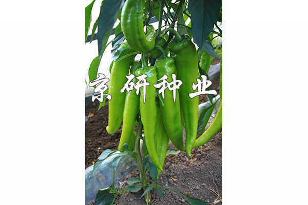 中早熟、豐產(chǎn)辣椒F1,無限生長(zhǎng)型;耐低溫,低溫寡照下座果優(yōu)秀,持續(xù)座果能力強(qiáng);膨果速度快;果實(shí)特長(zhǎng)牛角形,果基有皺,果型順直。果型為26-28×5.5厘米,單果重100-150克;果皮黃綠色,耐貯運(yùn);較耐熱耐濕,抗病毒病和青枯病。適于華北、西北及東北地區(qū)保護(hù)地種植。
