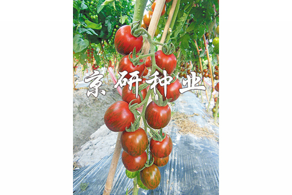 高端彩色早熟櫻桃類番茄雜交種,無限生長型,果實(shí)橢圓,暗紅紋底間綠色條紋,彩色獨(dú)特,色澤亮,萼片美觀,口味甜,風(fēng)味濃郁。每穗坐果數(shù)10-16個,平均單果重25克,硬度高,既可單果采收也可成串采收,連續(xù)坐果能力強(qiáng),豐產(chǎn)穩(wěn)產(chǎn)。具有抗番茄黃化曲葉病毒病Ty1基因位點(diǎn)、抗根結(jié)線蟲病Mi基因位點(diǎn),適合春秋保護(hù)地種植。
